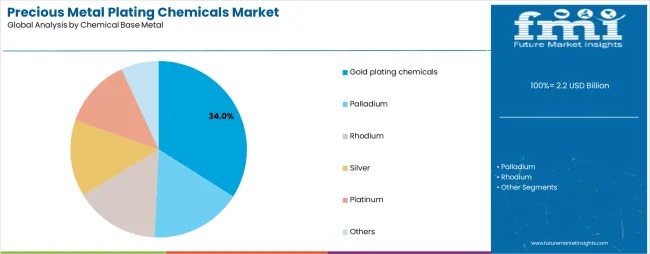 - Gold plating chemicals: 34% market share (potassium gold cyanide 48%, non-cyanide systems 22%)